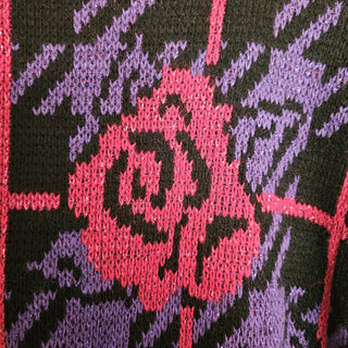 SWEATER SALE - Women's - 80's Graphic Pink Rose + Purple Sweater (L) (BRI) - MTS